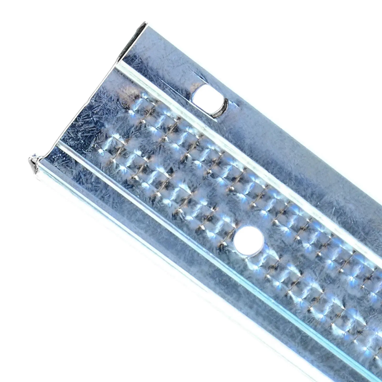 Galvanisert stål gir god holdbarhet i tørre innendørsmiljøer. Koplingshull med forutsigbar senteravstand forenkler montering og demontering. Kompatibel med standard T24-komponenter fra leverandøren, slik at delene kan suppleres enkelt ved senere ombygging.