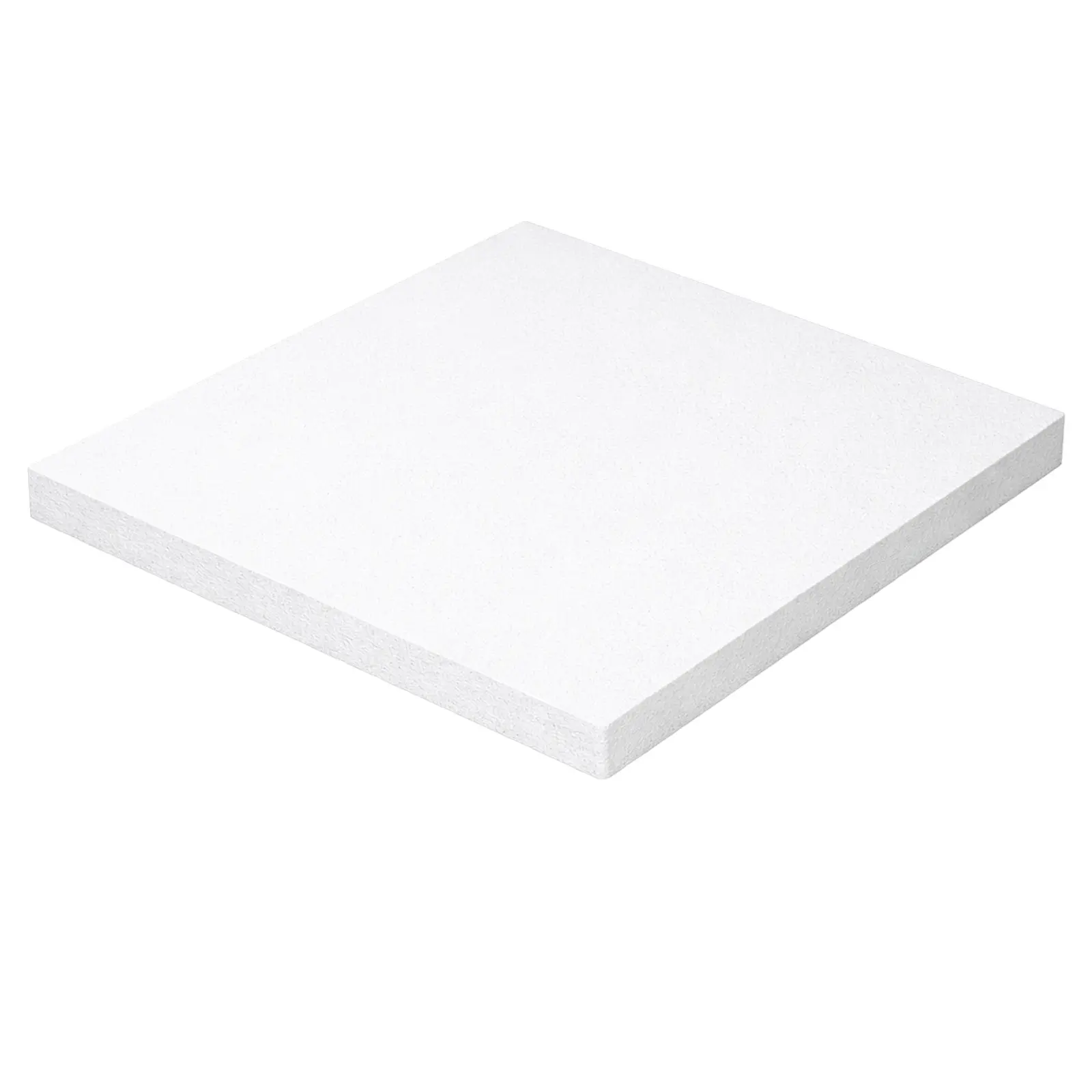 Platen består av en glassullkjerne med baksidebelegg og forseglede kanter, samt en hvit overflate i fargetone NCS S 0500-N, som gir et lyst og ensartet uttrykk.