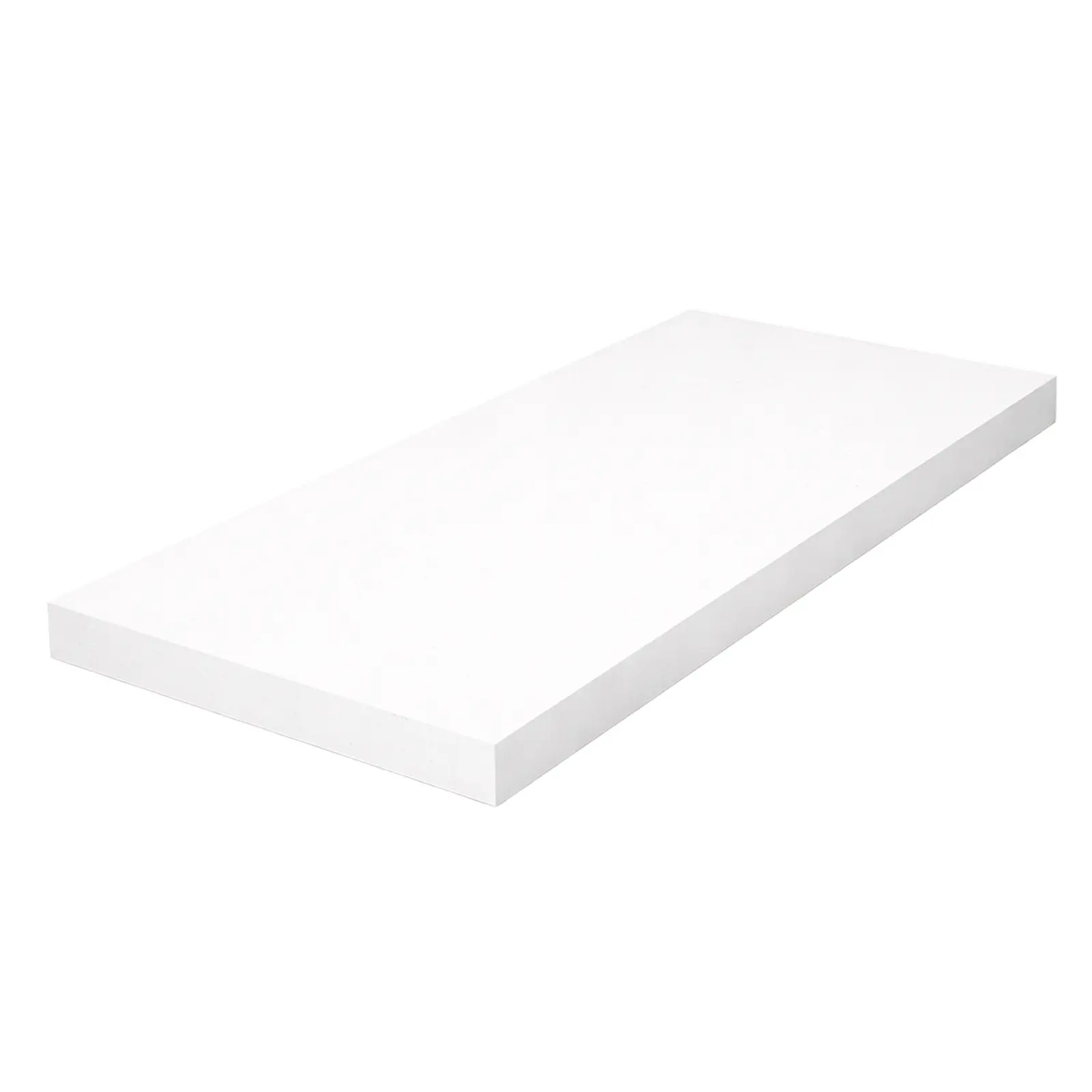 Platen består av en glassullkjerne med baksidebelegg og forseglede kanter, samt en hvit overflate i fargetone NCS S 0500-N, som gir et lyst og ensartet uttrykk.